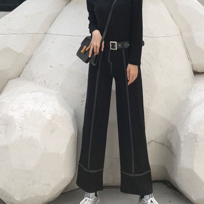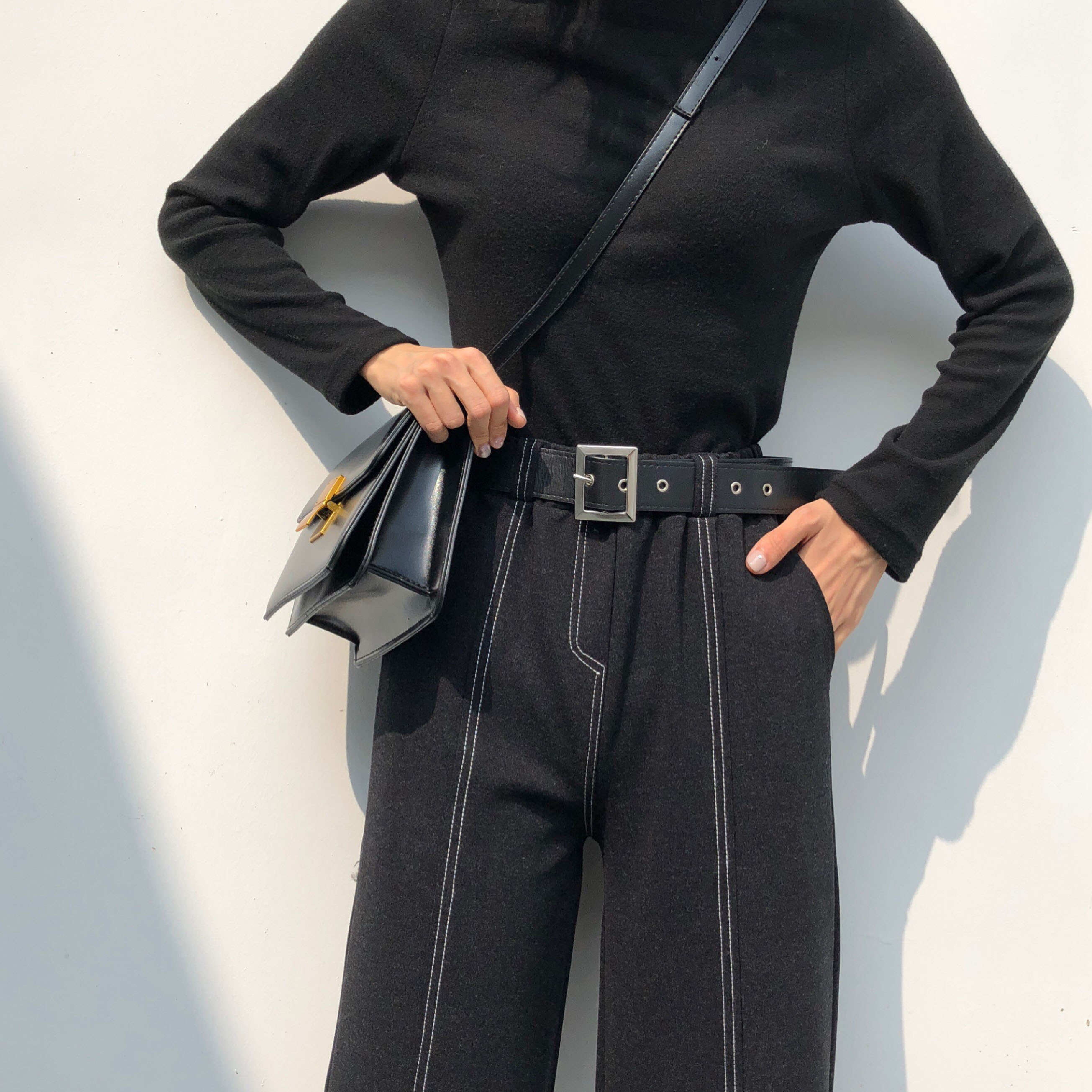/ 復古韓國chic風百搭高腰顯瘦毛呢直筒闊腿褲女秋冬2018新款配皮帶