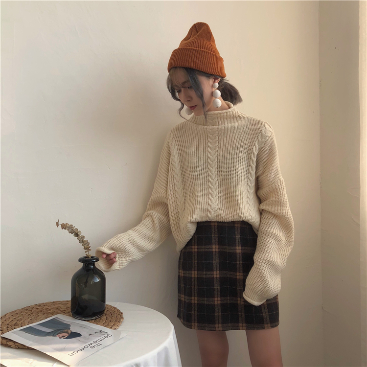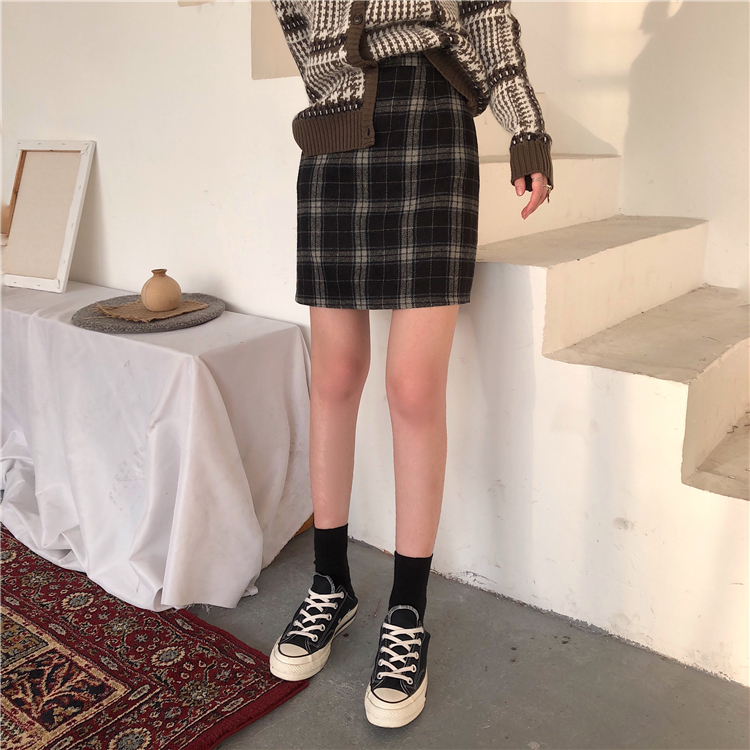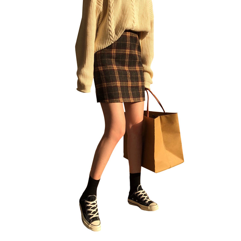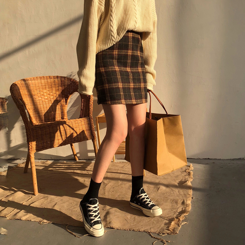 / 秋季韓版學院風寬松撞色格子半身裙高腰顯瘦A字裙短裙學生裙子女
