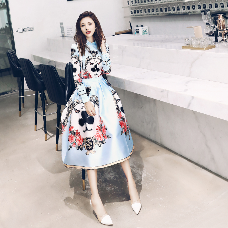 秋裝女2018新款襯衫配半裙網紅兩件套裝時尚名媛氣質洋氣復古套裝