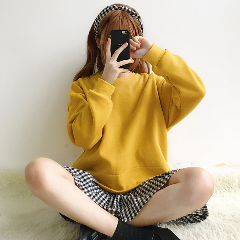 / eeg假兩件拼接格子衛衣裙女冬裝2018新款韓版寬松加絨套頭連衣裙
