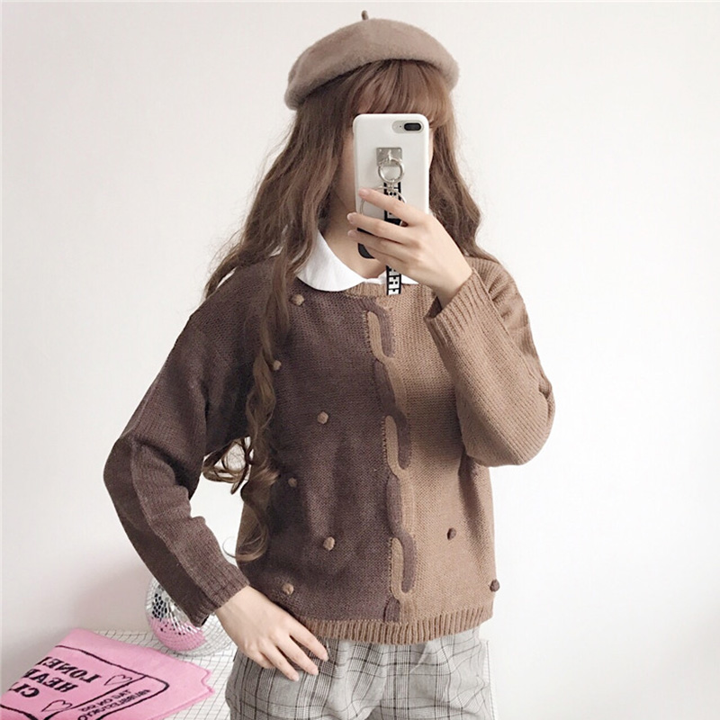 秋冬女裝2018新款學院風顯瘦麻花毛衣可愛俏皮拼色打底針織衫上衣