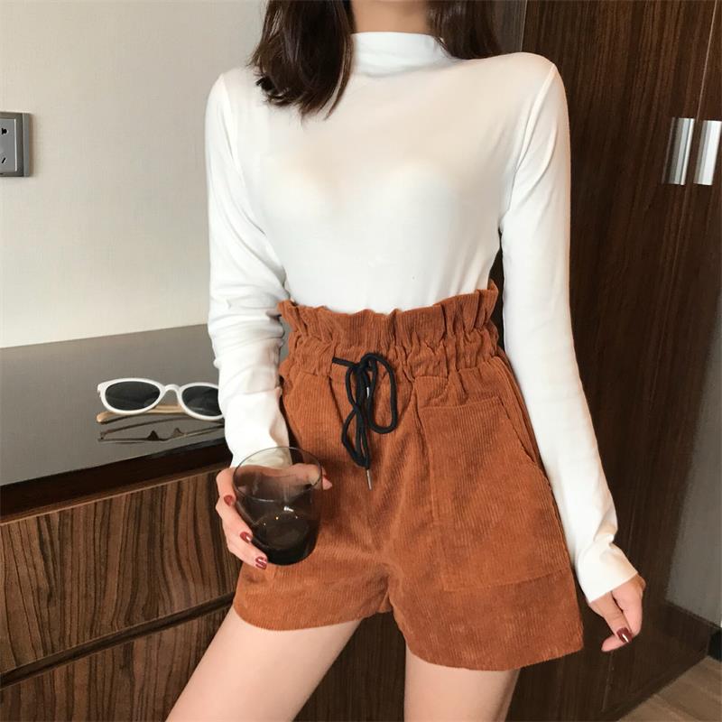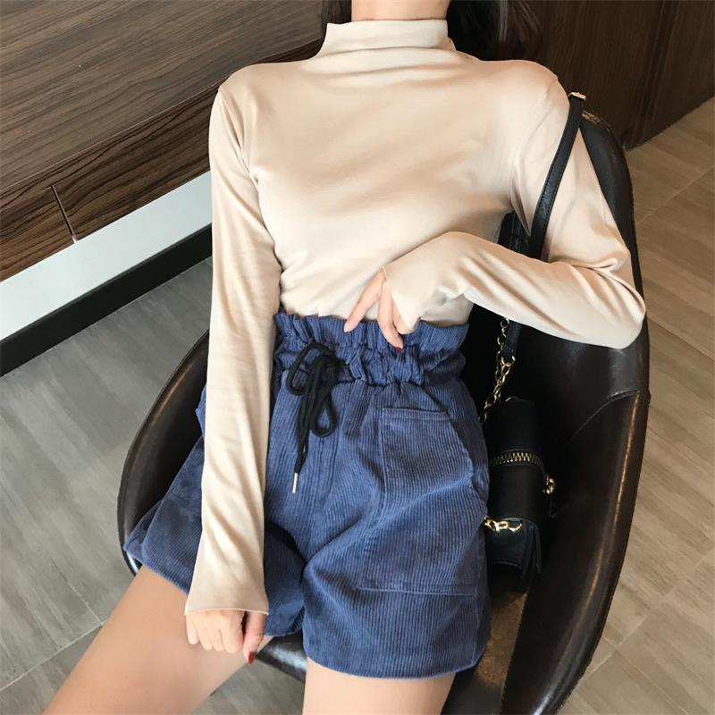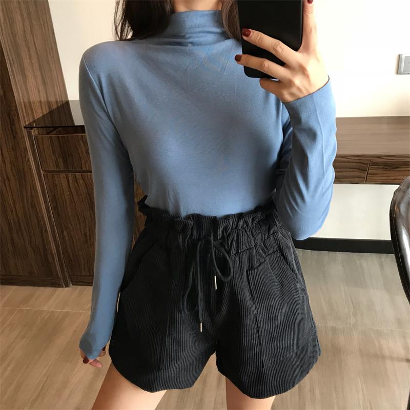 / 秋季新款韓版復古chic純色百搭修身顯瘦長袖T恤半高領打底衫上衣