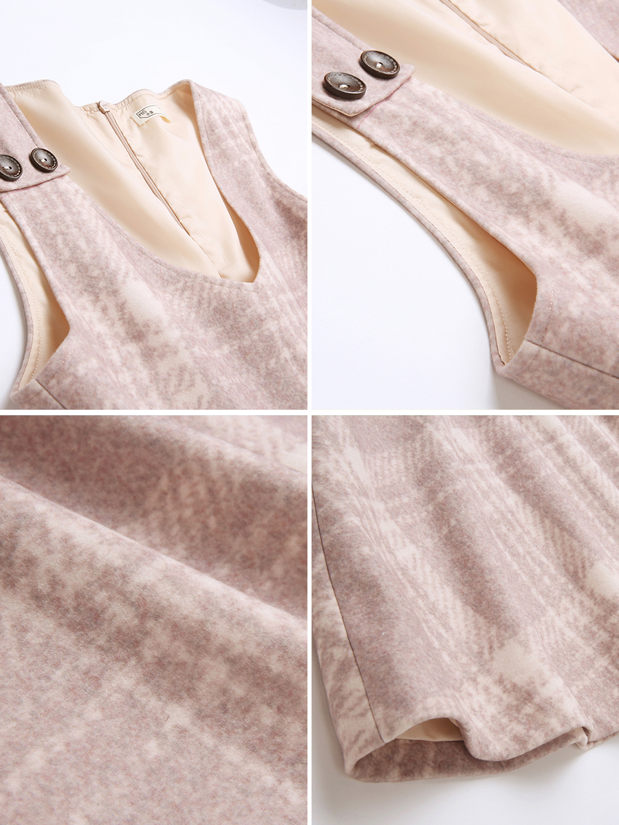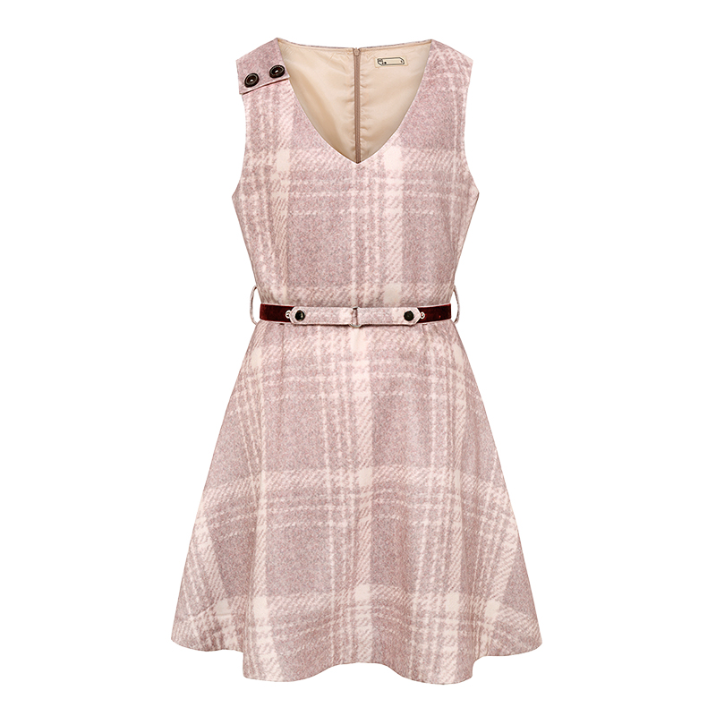 MG小象復古格紋連衣裙女秋冬2018新款V領無袖腰帶學生少女心裙子