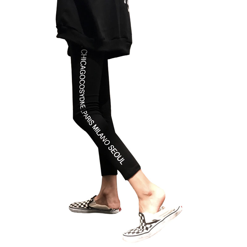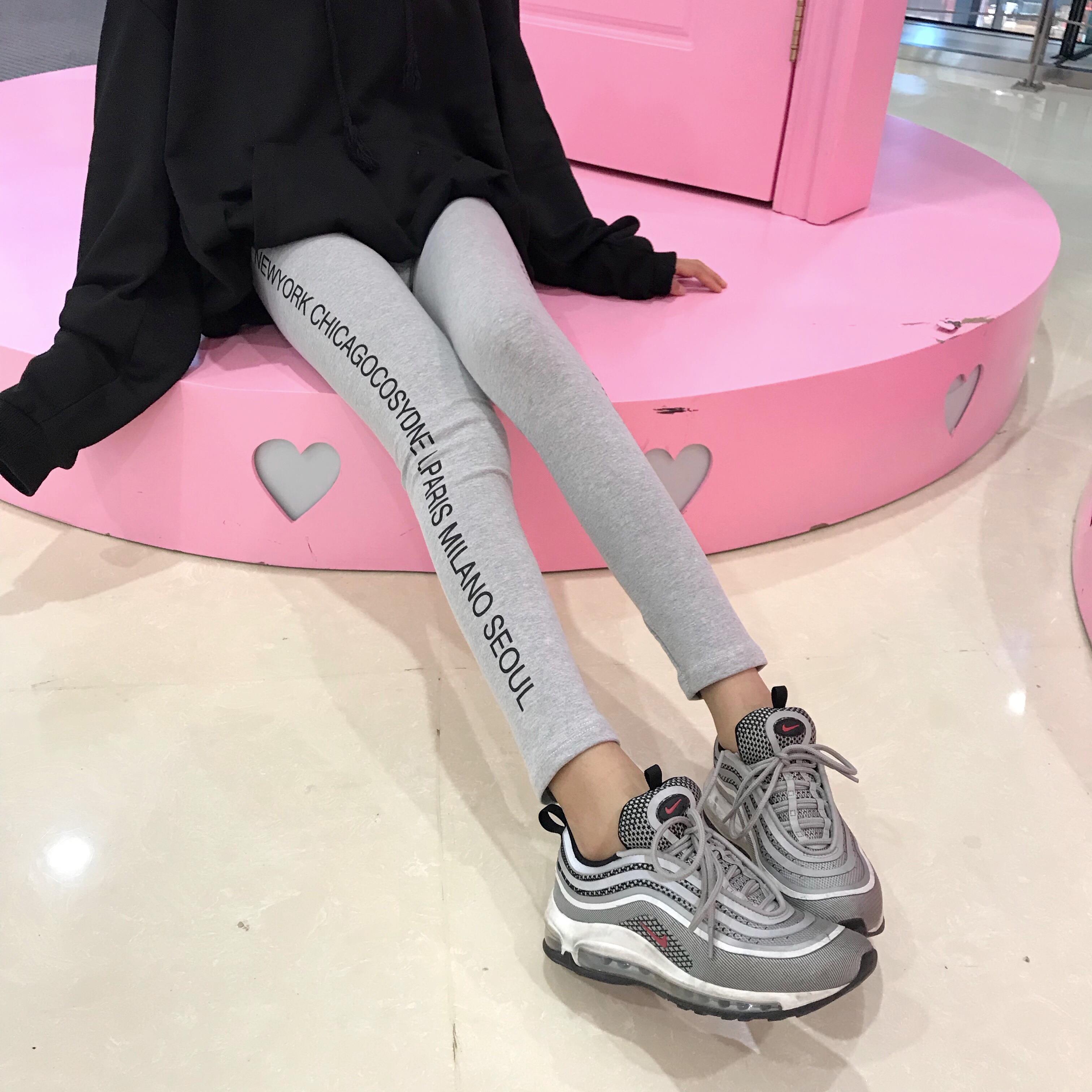 / 秋冬女裝韓版原宿風字母修身顯瘦打底褲外穿彈力緊身褲休閑褲長褲
