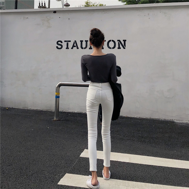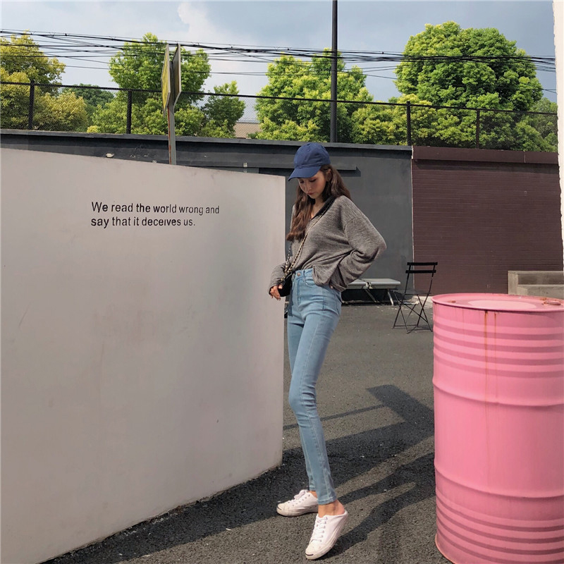 / 秋裝女2018新款復古顯瘦高腰緊身彈力小腳休閑洗水牛仔褲女春秋潮