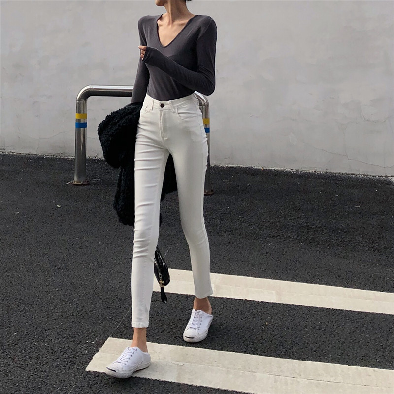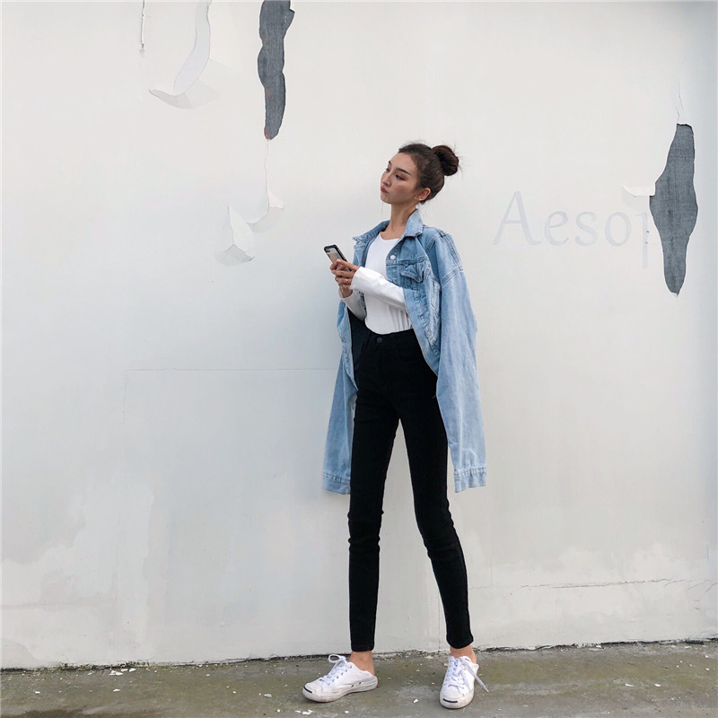 復古韓版高腰顯腿長款修身顯瘦鉛筆褲小黑褲小腳牛仔褲女春秋新款