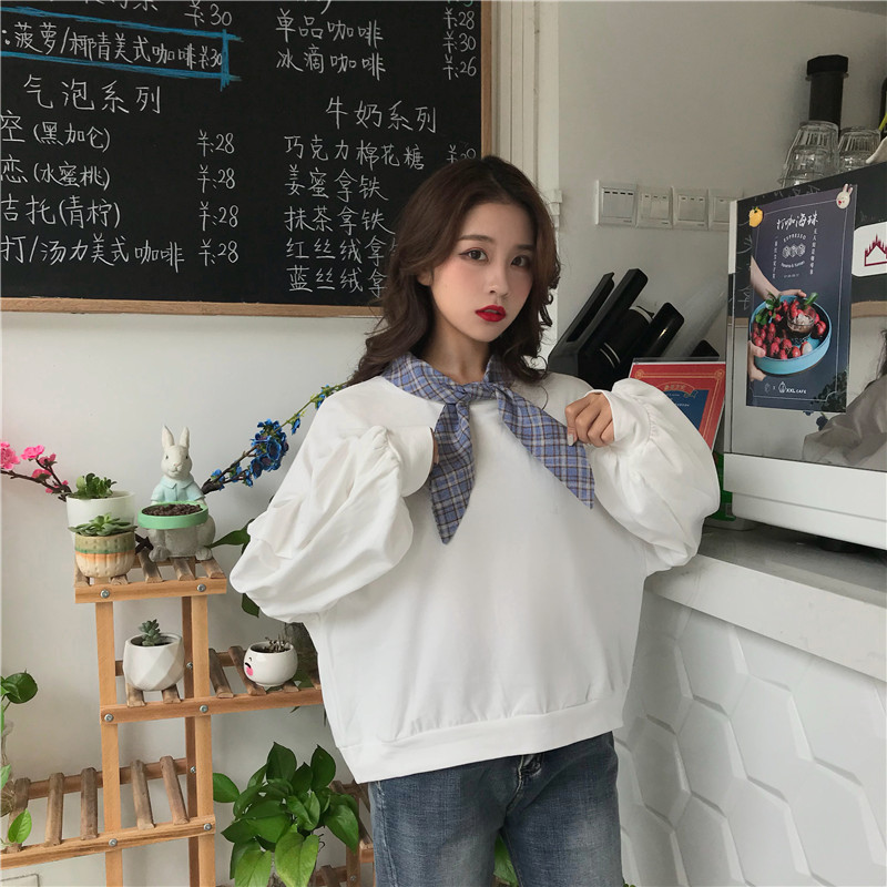 / 秋季2018新款韓版短款領結BF風寬松假兩件套頭超火衛衣上衣外套女