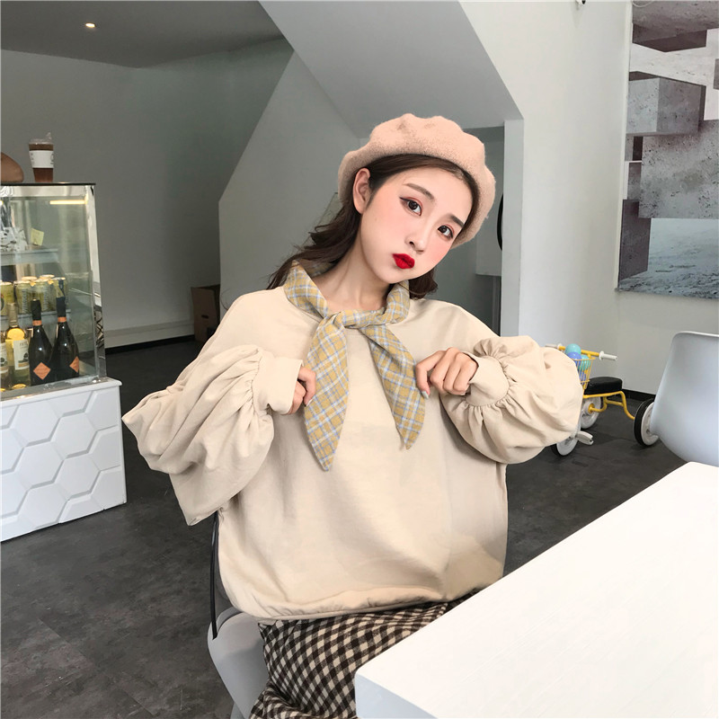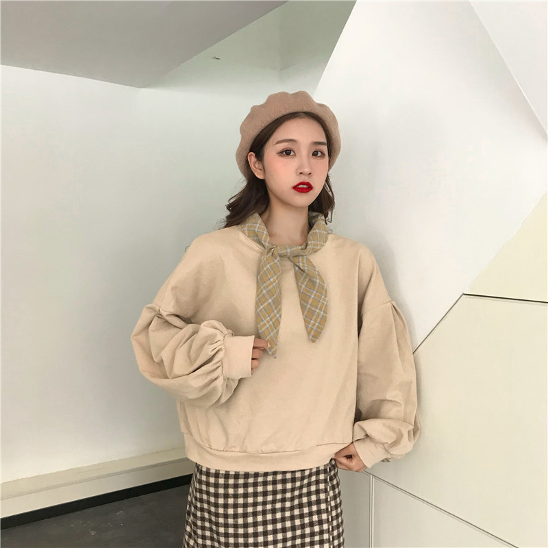 秋季2018新款韓版短款領結BF風寬松假兩件套頭超火衛衣上衣外套女