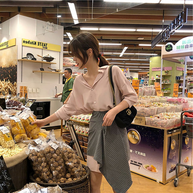 / 2018新款女裝秋裝長袖冷淡風不規則初戀裙子有女人味的復古連衣裙