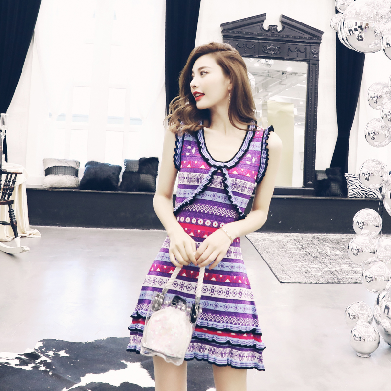 / 針織連衣裙女夏2018新款印花a字裙心機收腰顯瘦慵懶風裙子