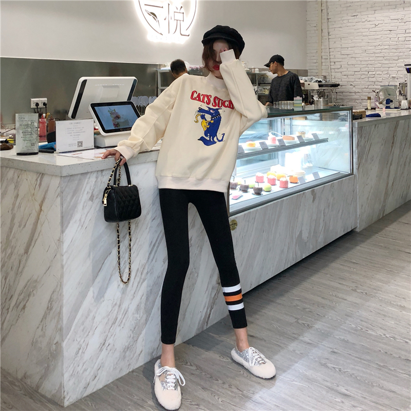 / 慵懶卡通中領加絨衛衣女秋冬2018新款+高腰顯瘦絨彈力條紋小腳褲