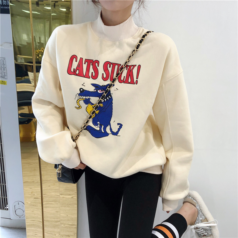 衛衣2018新款女長袖韓版寬松顯瘦oversize印花半高領慵懶長款裙子