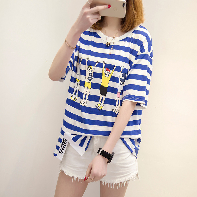 條紋短袖t恤女寬松韓版學生百搭bf夏裝新款衣服潮小清新上衣