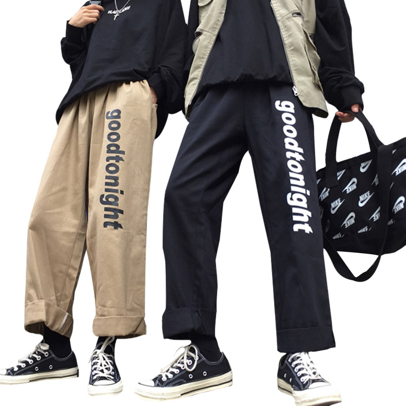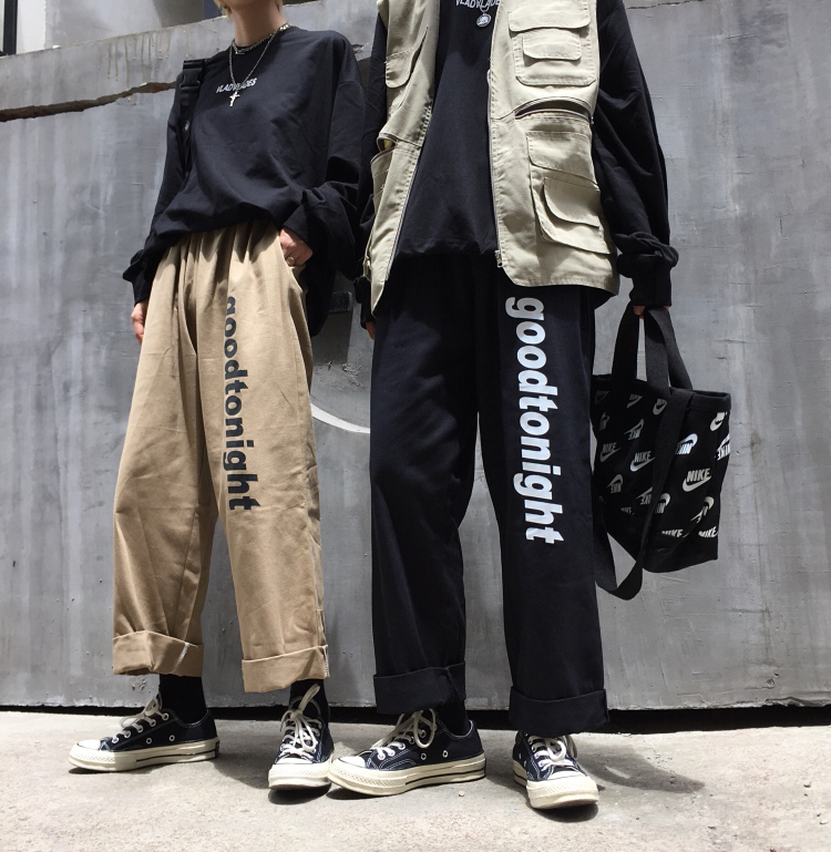 / 秋季女裝韓版字母復古工裝褲闊腿褲休閑褲寬松高腰顯瘦直筒褲長褲