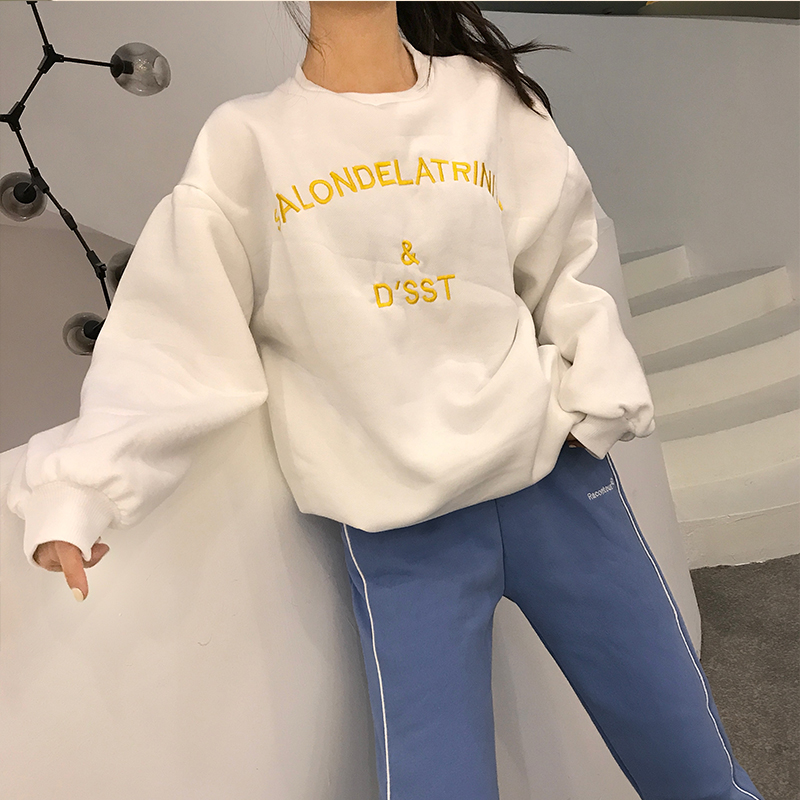 / 復古chic新款韓版百搭秋冬加厚加絨寬松長袖上衣女小清新保暖衛衣