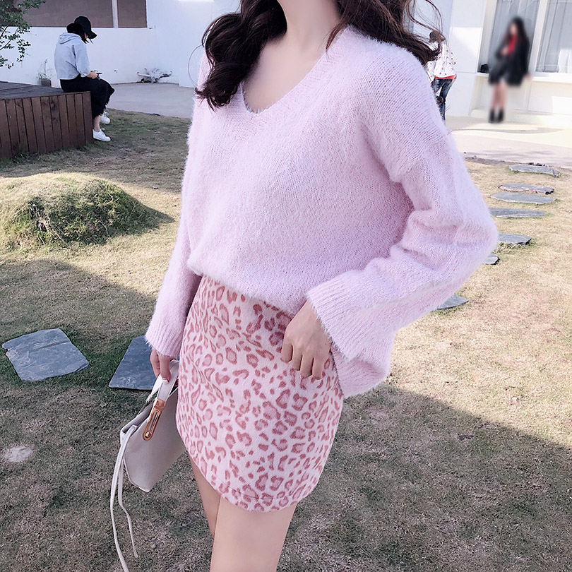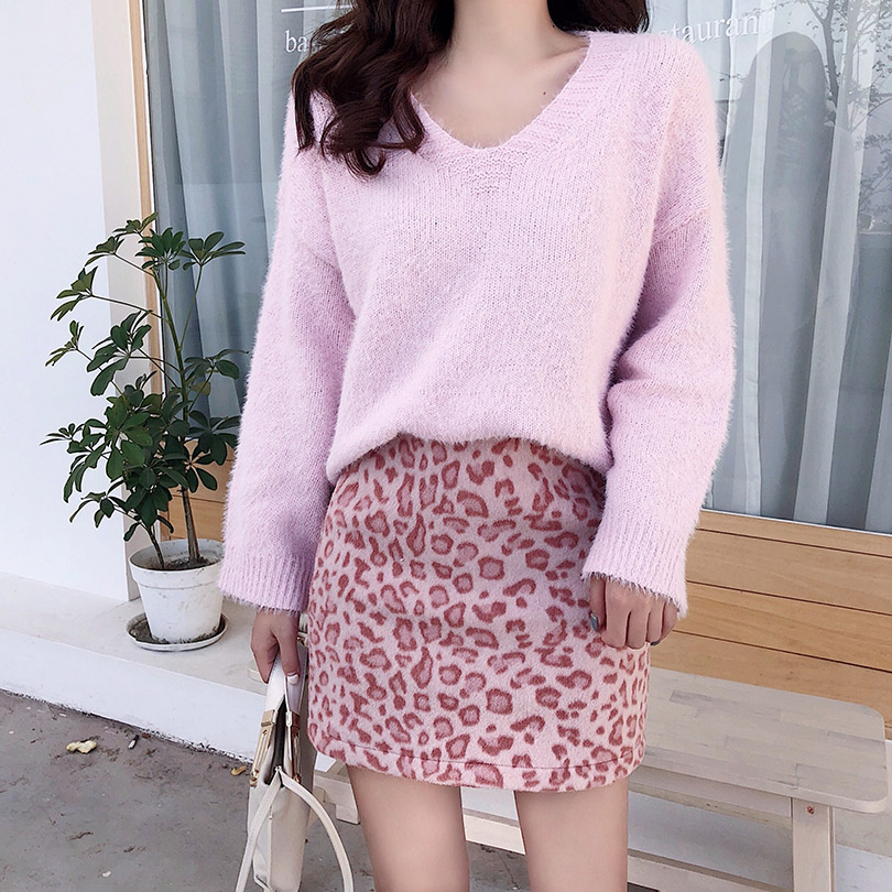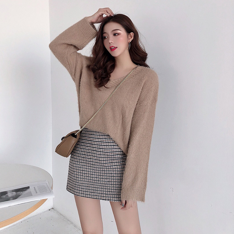 / 韓版秋冬百搭V領純色針織衫休閑寬松套頭顯瘦長袖毛衣女2018新款