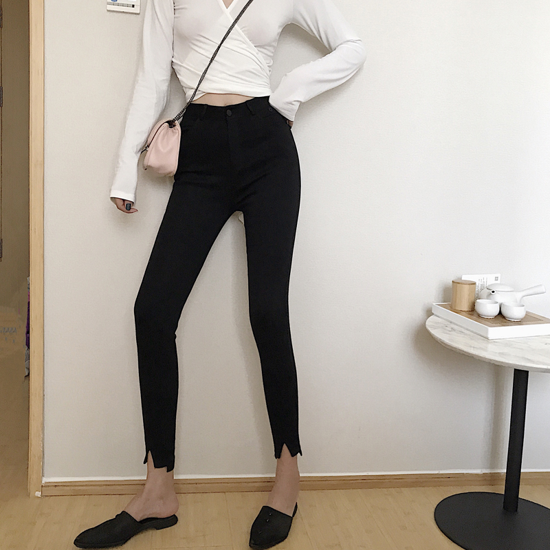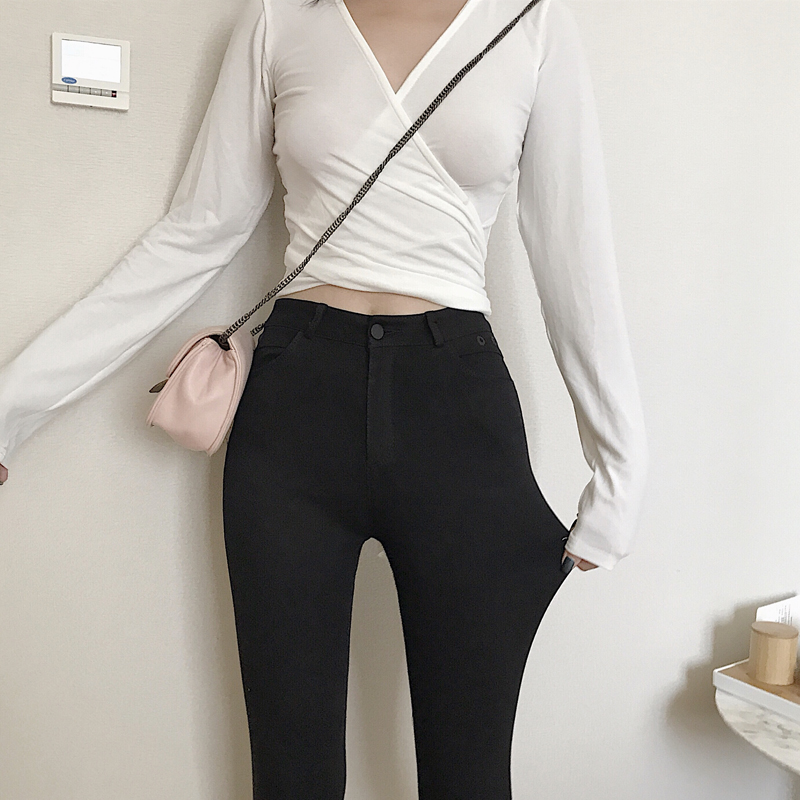 2018秋裝新款韓版黑色打底褲外穿高腰顯瘦小腳鉛筆褲緊身九分褲女