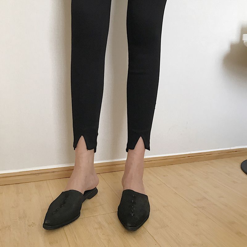 / 2018秋裝新款韓版黑色打底褲外穿高腰顯瘦小腳鉛筆褲緊身九分褲女