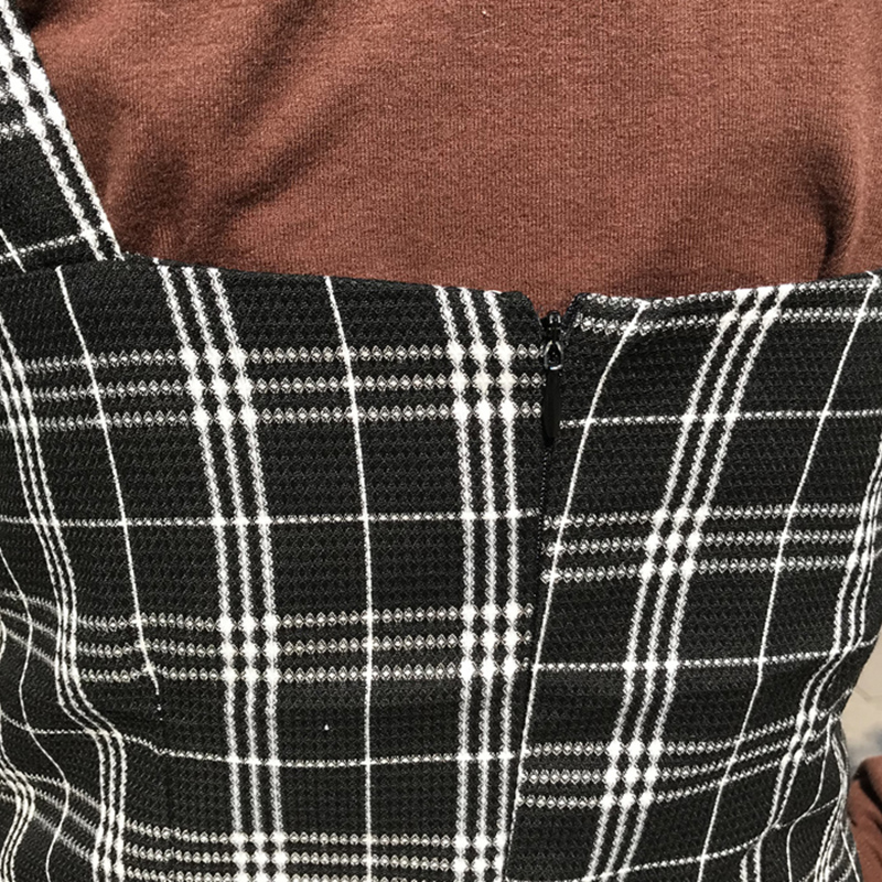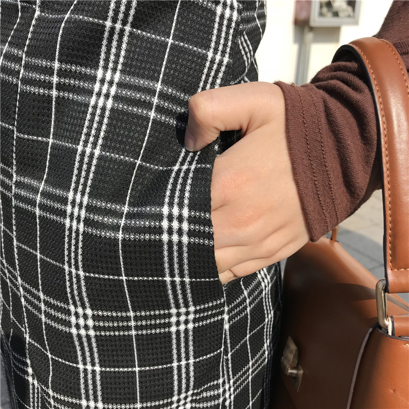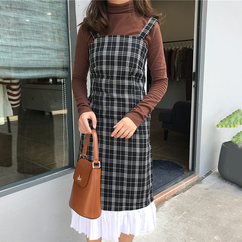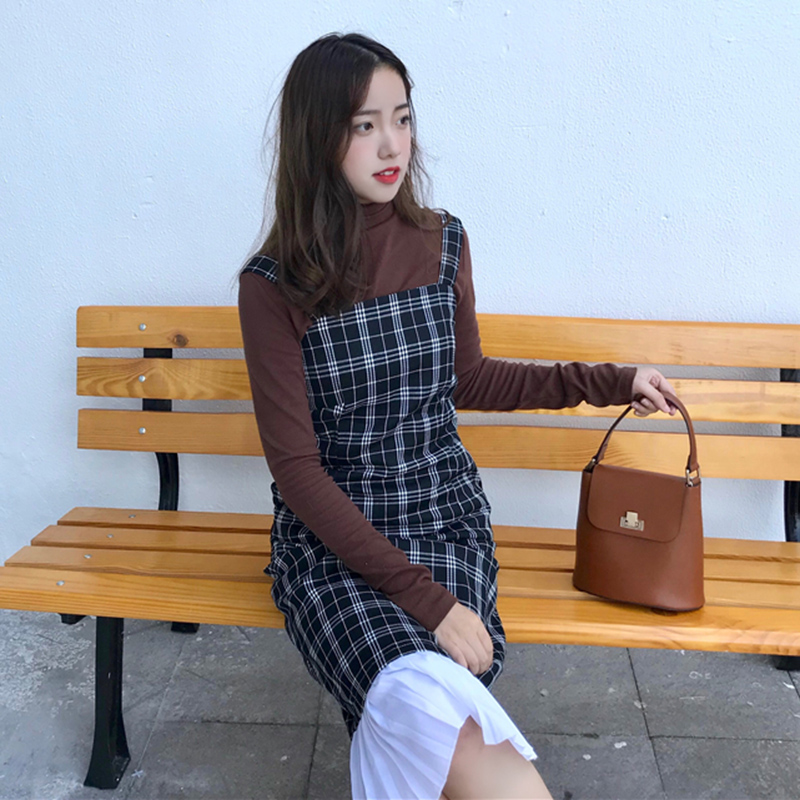 / 連衣裙秋裝女2018新款港風復古桔梗裙顯瘦中長裙子拼接格子吊帶裙