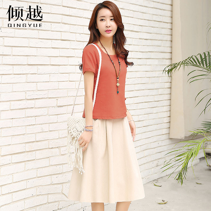 / 傾越2017夏裝韓版新款套裝女顯瘦時尚套裝裙子中長款氣質兩件套潮