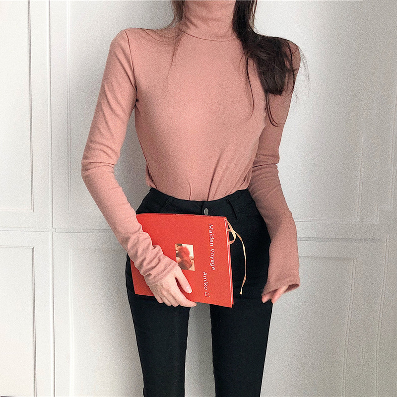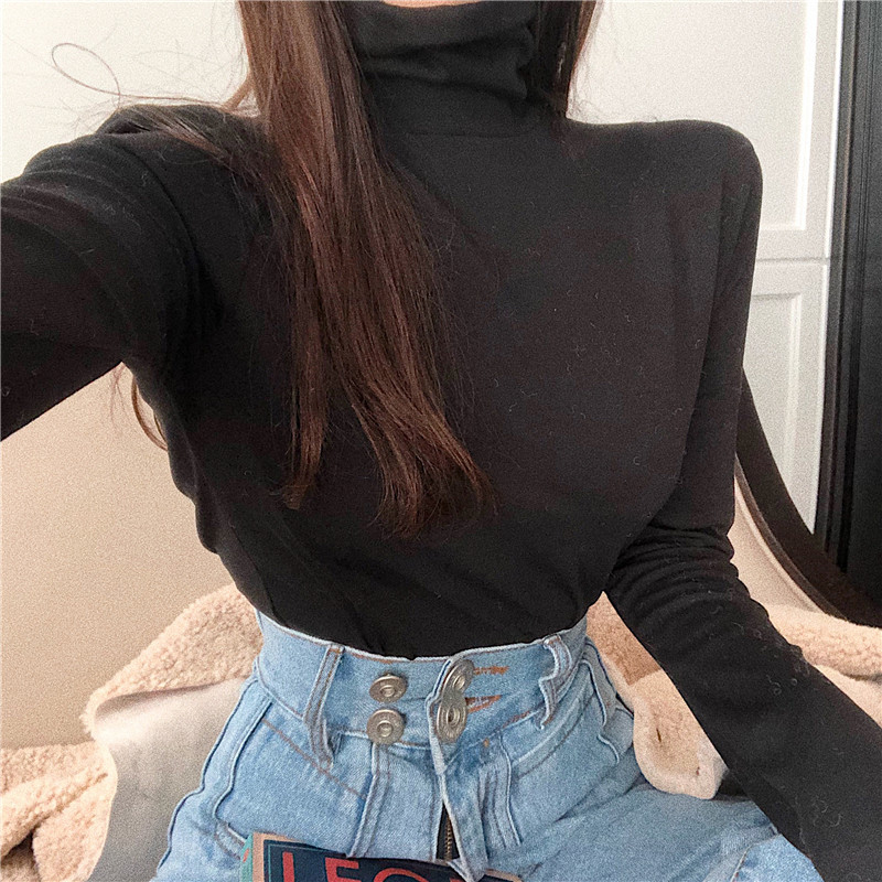/ 港味修身顯瘦打底衫女秋冬裝新款韓版高領黑色長袖上衣時尚T恤潮