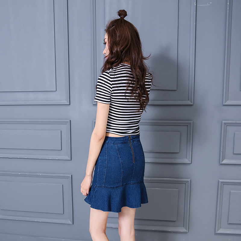 荷葉邊包臀牛仔褲裙女高腰牛仔半身裙a字魚尾裙半裙顯瘦短裙裙子