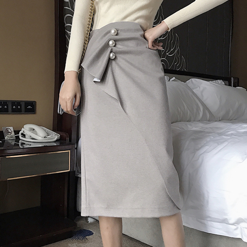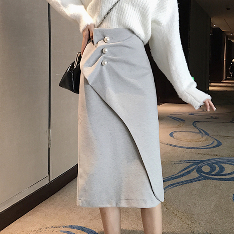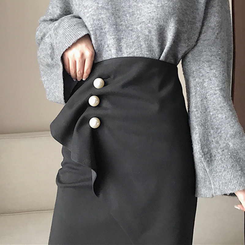 秋冬女裝2018新款韓版高腰顯瘦不對稱包臀裙學生復古黑色半身裙子
