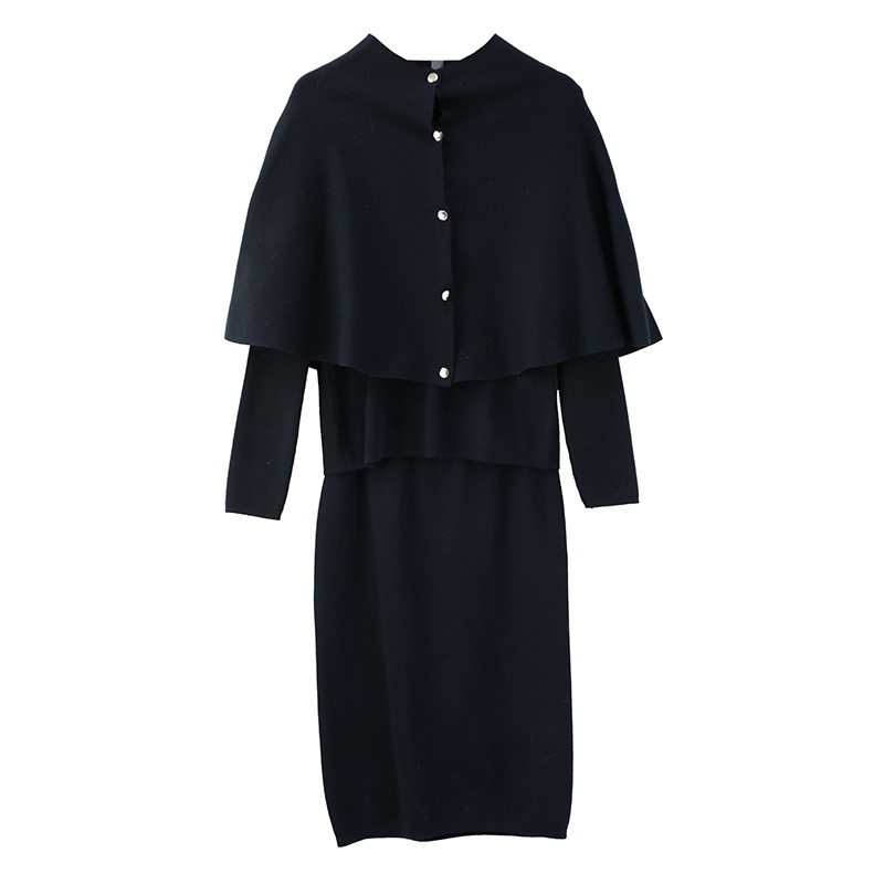 名媛氣質2018秋冬名媛時尚斗篷針織上衣半裙套裝連衣裙三件套女潮