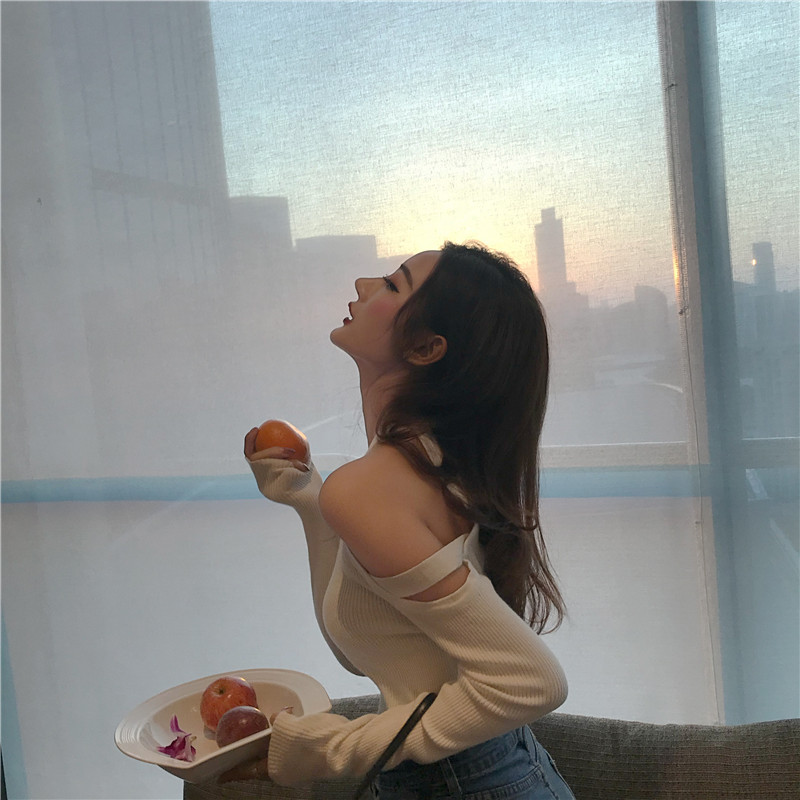 chic早秋毛衣慵懶2018新款女時尚韓版修身顯瘦百搭露肩打底針織衫