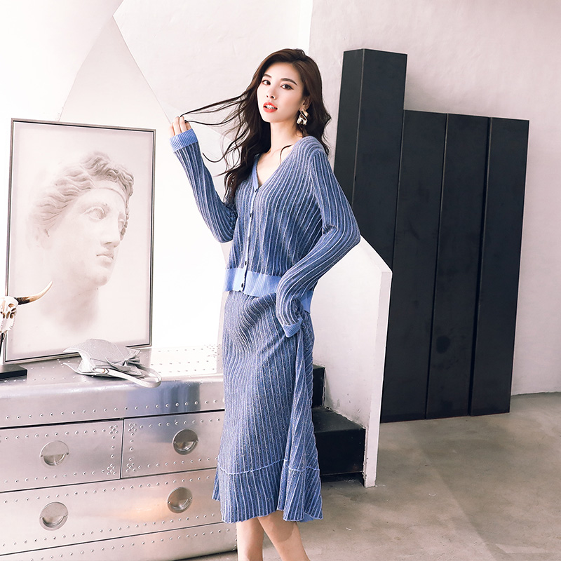 / 秋季裙子女2018新款時尚套裝長袖開衫氣質小心機時髦百褶半身裙潮