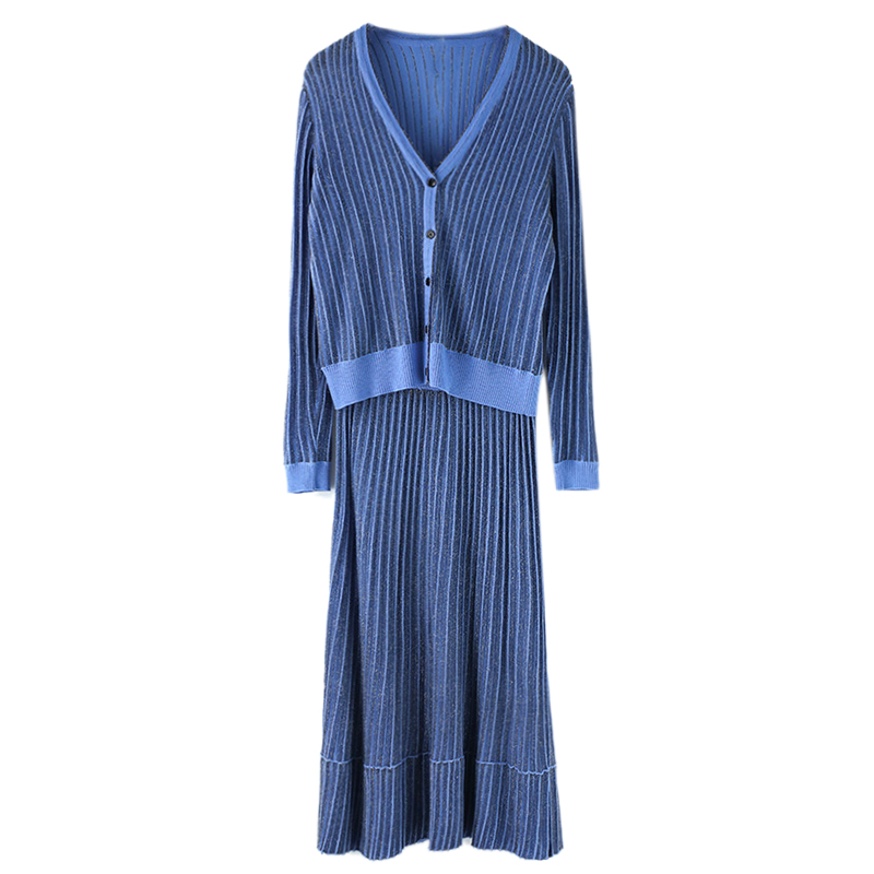 秋季裙子女2018新款時尚套裝長袖開衫氣質小心機時髦百褶半身裙潮