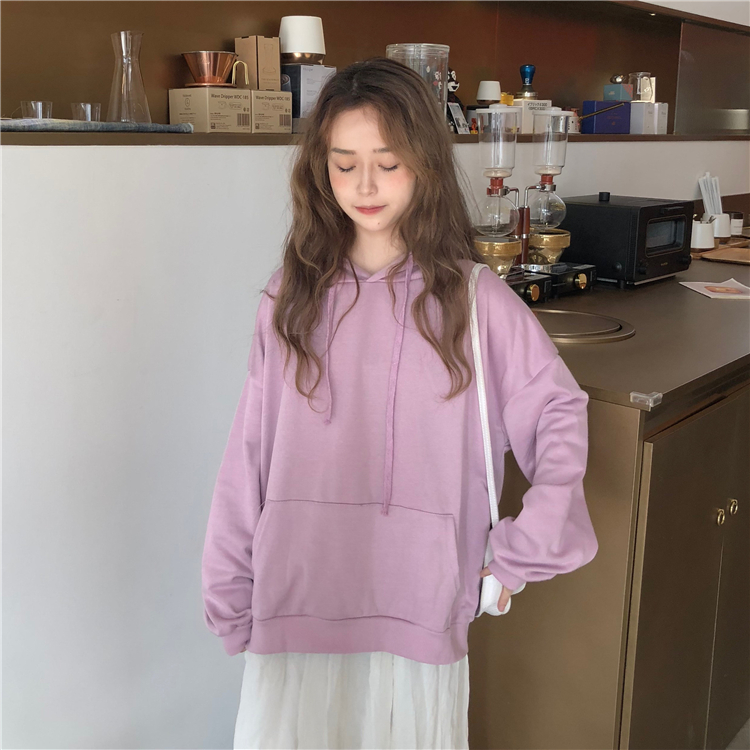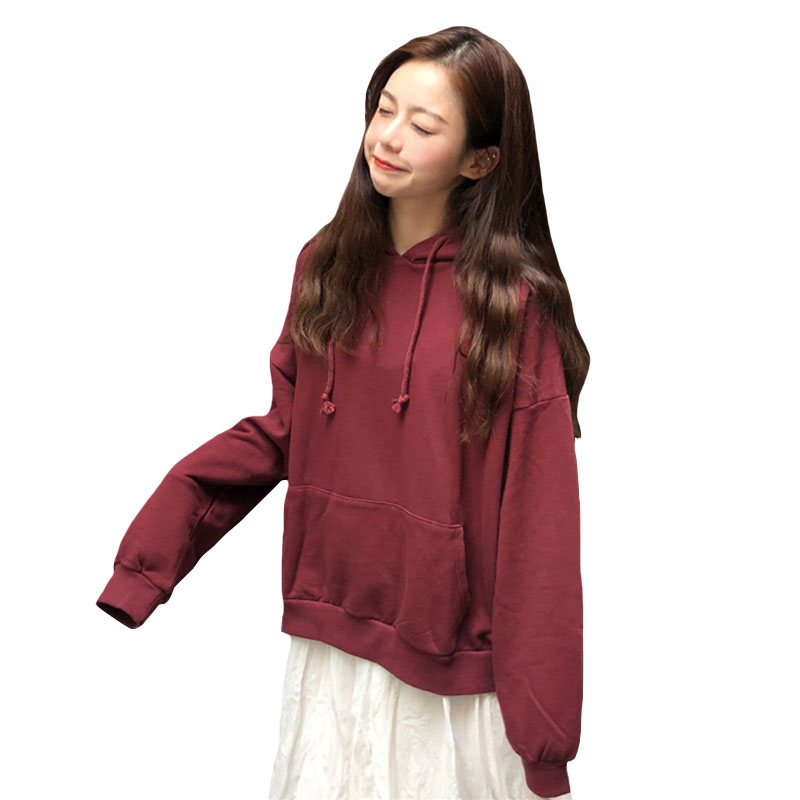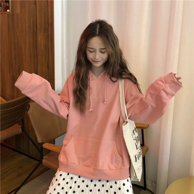 秋季女裝2018新款韓版寬松純色連帽加厚pp home超火長袖衛衣外套