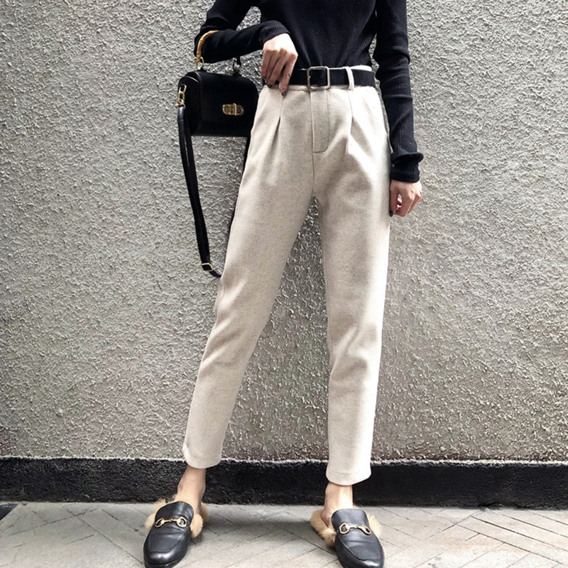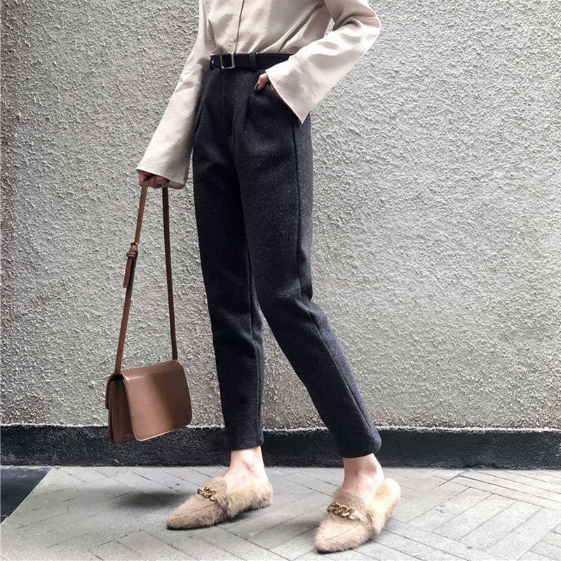 / 精神女生社會褲女冬裝2018新款高腰顯瘦毛呢西裝褲寬松休閑哈倫褲