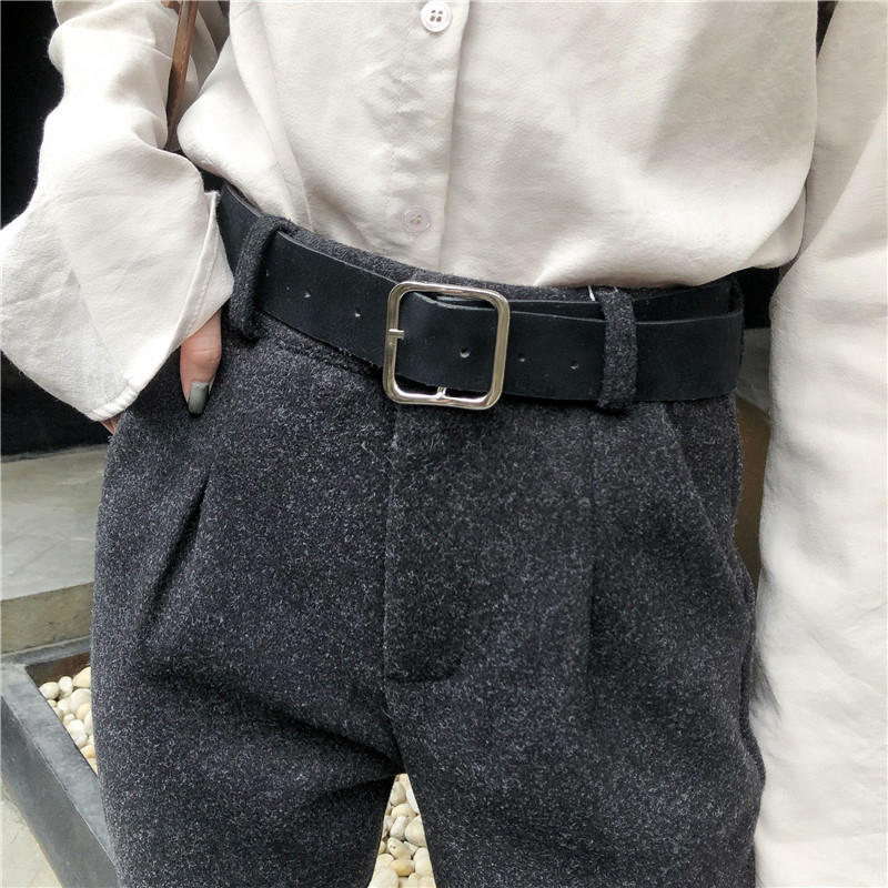 精神女生社會褲女冬裝2018新款高腰顯瘦毛呢西裝褲寬松休閑哈倫褲