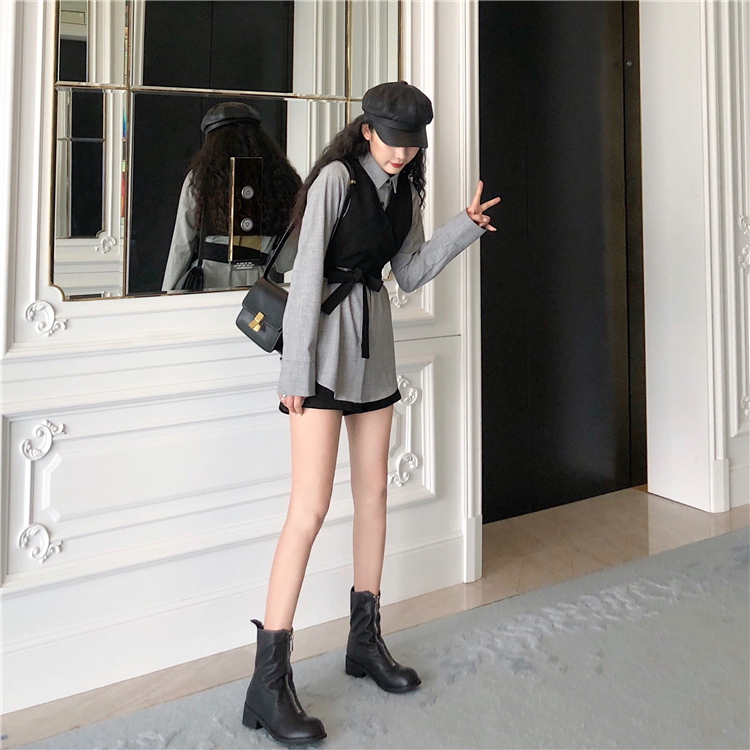 襯衫馬甲的組合形式很日常實穿,上班族和學生黨都很適合