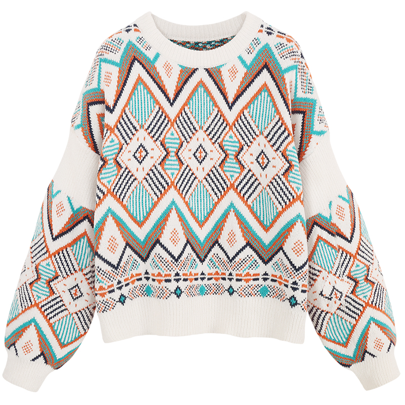 MG小象圓領套頭毛衣女寬松學生針織衫冬季2018新款原宿bf風上衣潮