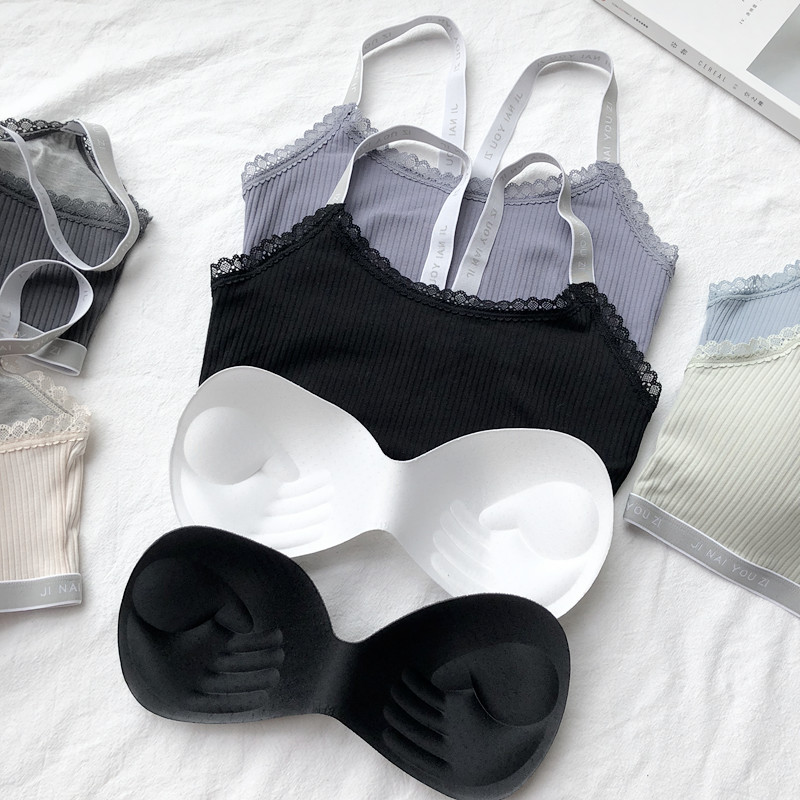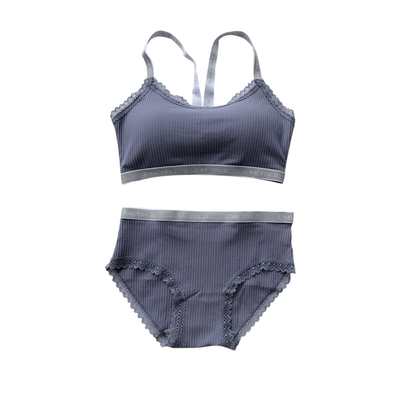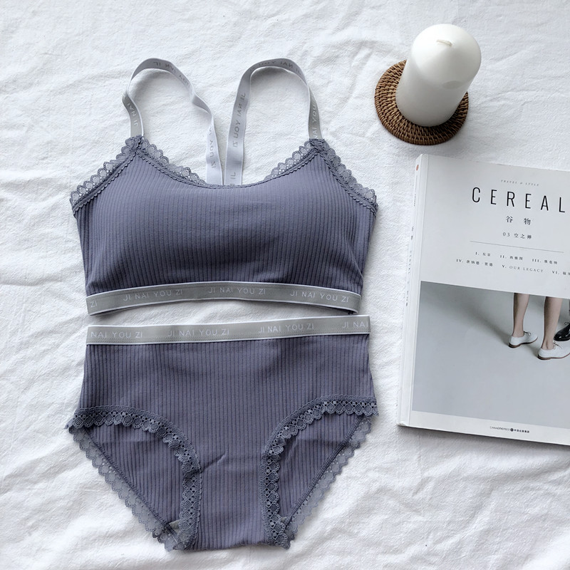 / 夏季性感螺紋字母運動交叉吊帶背心內衣美背聚攏文胸內褲兩件套女