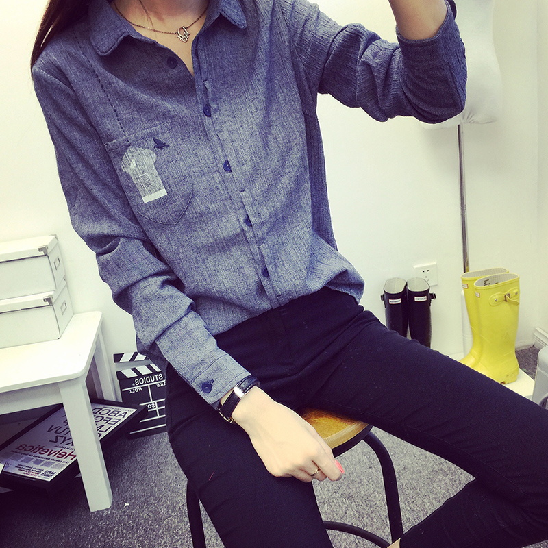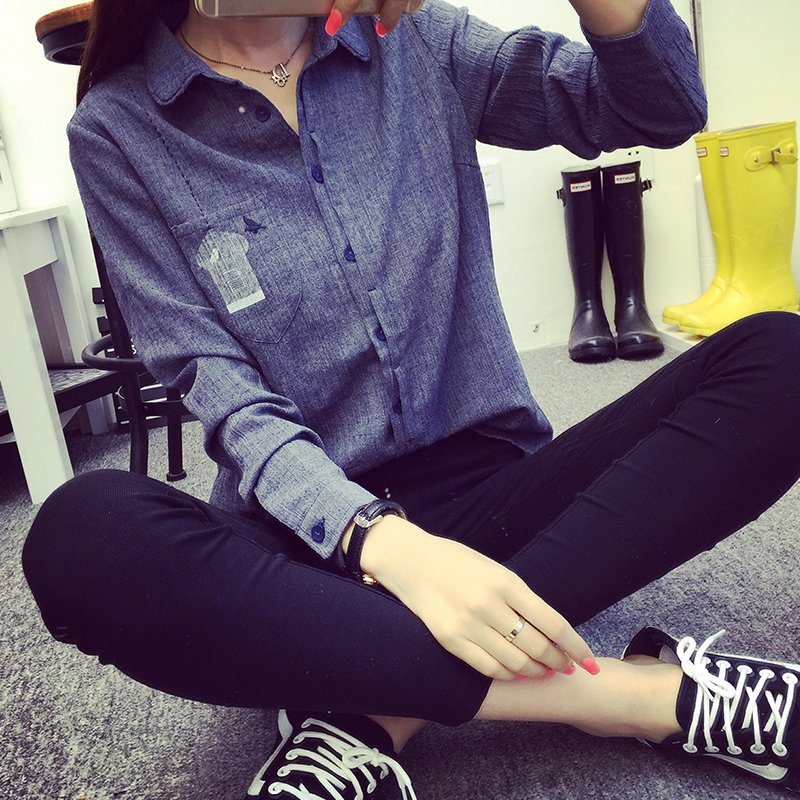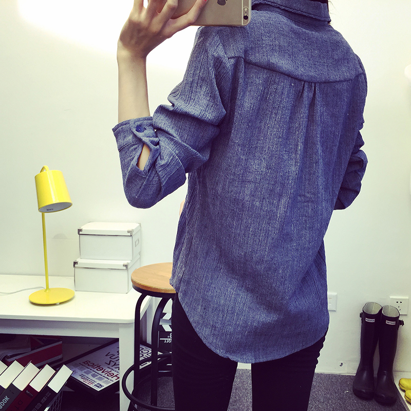 秋裝新款韓版女裝休閑牛仔色長袖襯衫寬松打底衫女襯衣