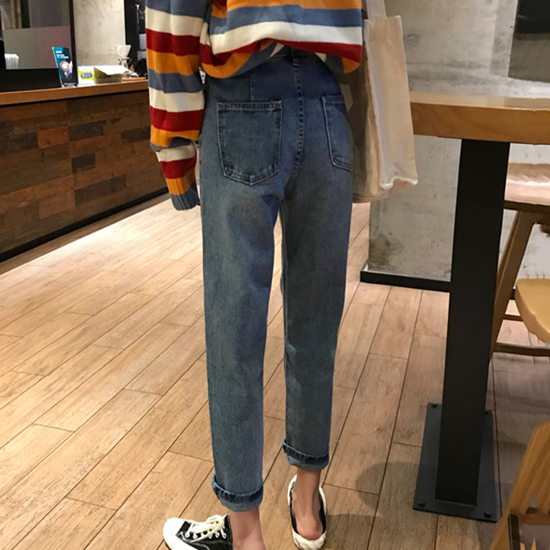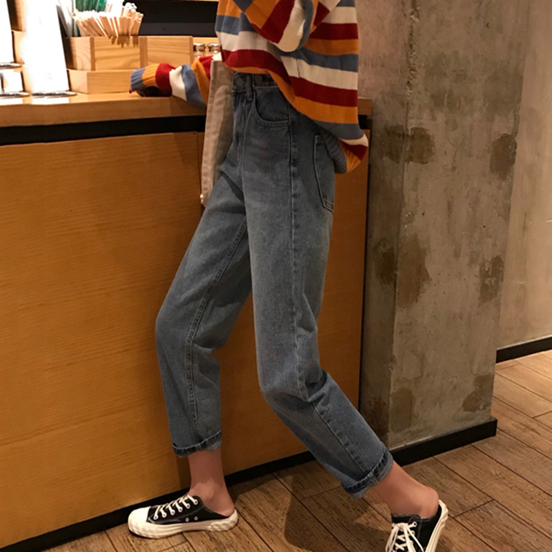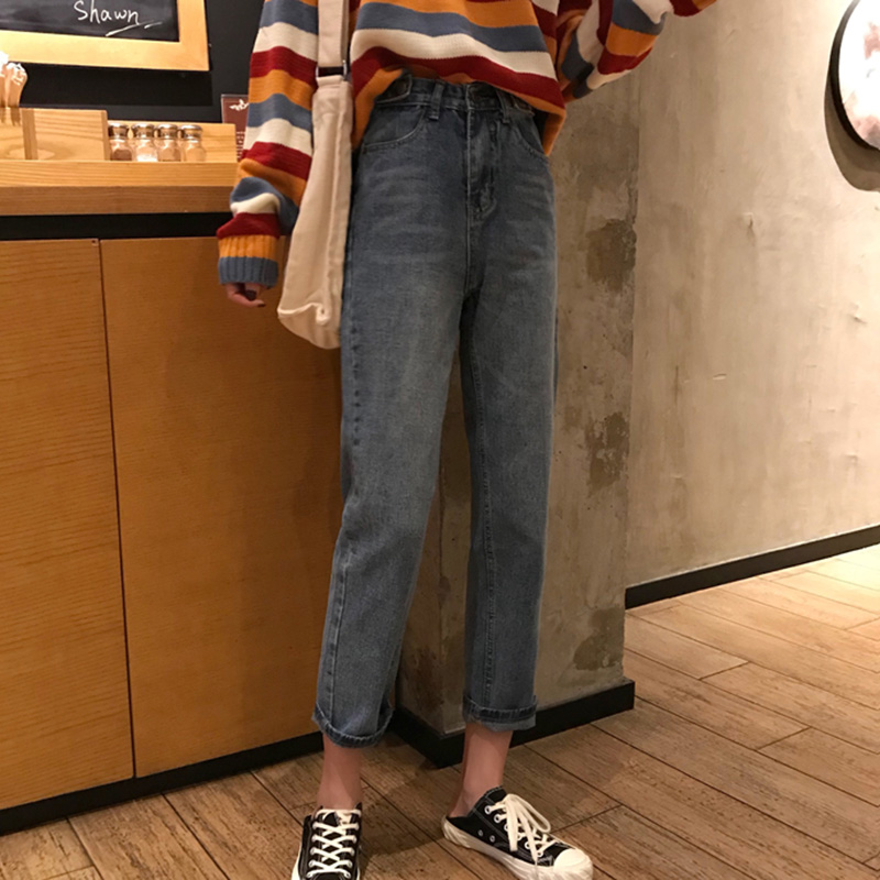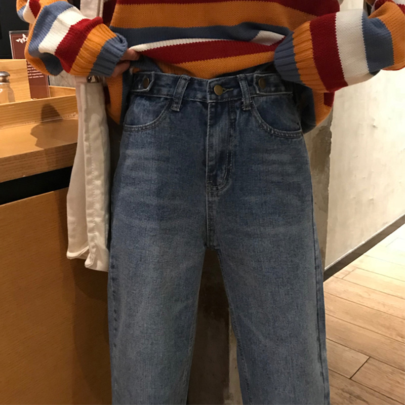 秋裝女2018新款港味復古寬松顯瘦直筒褲子學生高腰休閑九分牛仔褲