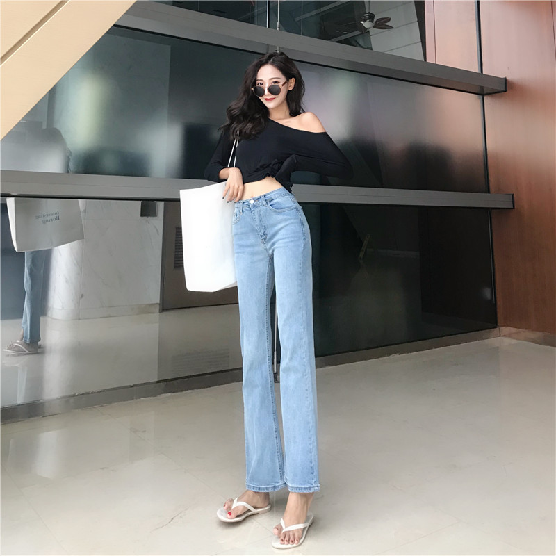 復古超高腰修身微喇叭顯高牛仔褲女春秋2018新款韓版顯瘦百搭長褲