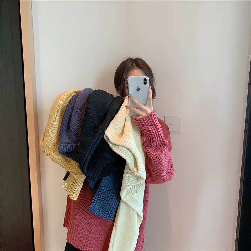 網紅同款慵懶風套頭毛衣女2018新款秋冬韓版寬松多色毛衣~男女款