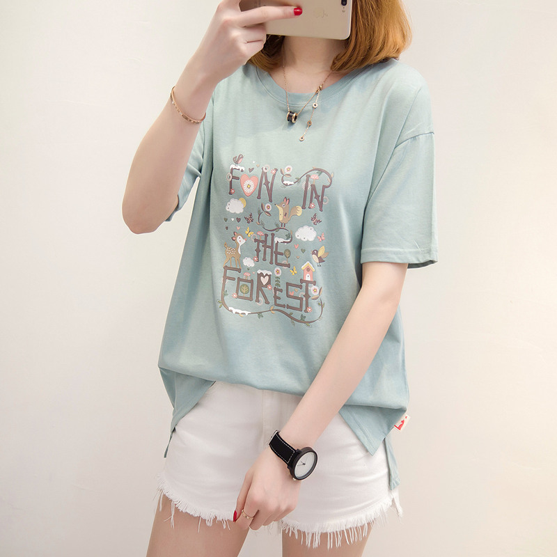 短袖上衣女夏新款女裝卡通白色t恤女寬松韓版體恤小衫百搭潮