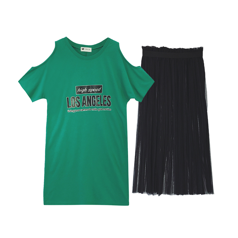 / 夏季新款韓版寬松大碼短袖t恤連衣裙女網紗半身裙兩件套裝裙