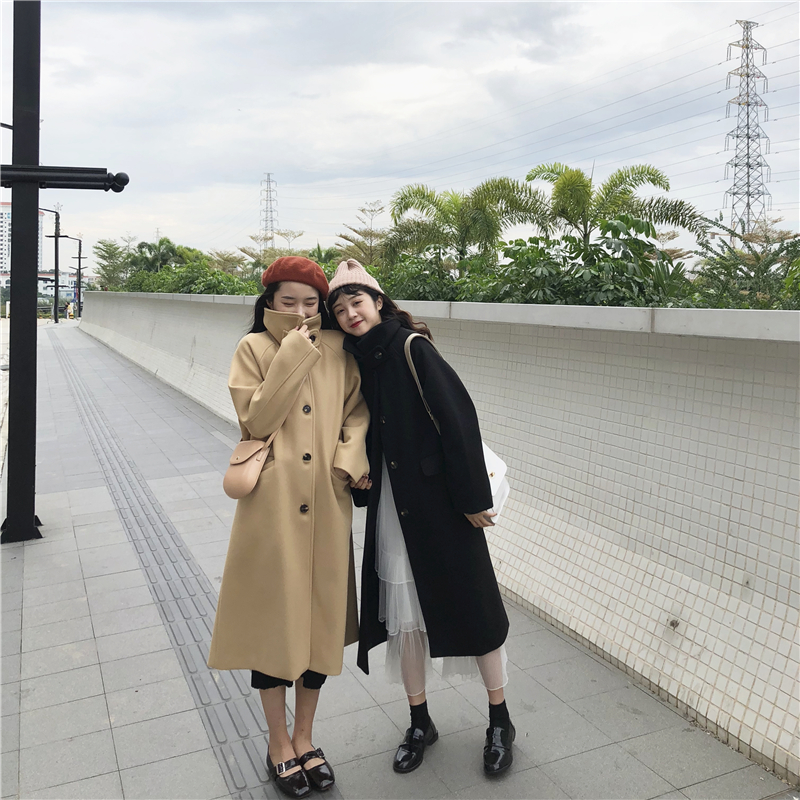 / 韓國秋冬新款chic時尚百搭氣質保暖寬松大衣氣質加厚長款呢子外套