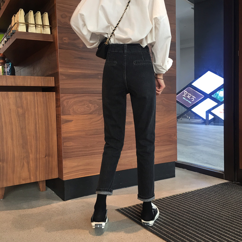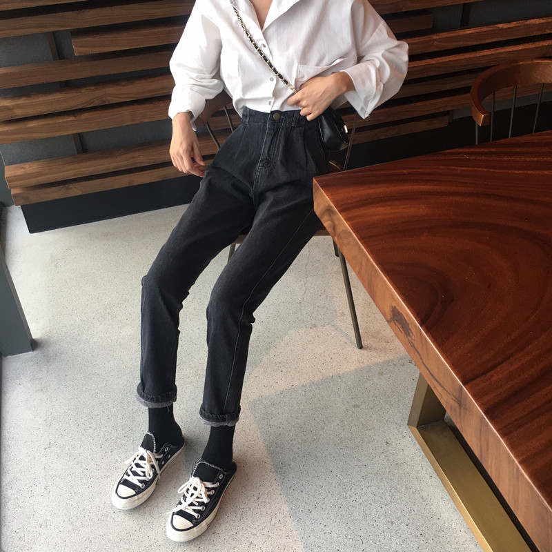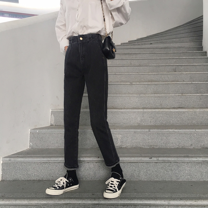 / 秋冬女裝韓版復古chic寬松百搭牛仔褲高腰加厚直筒褲長褲學生褲子