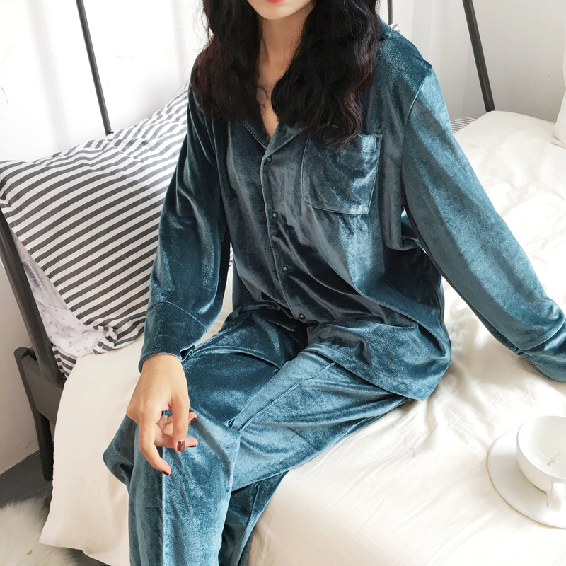 / 秋季新款復古女外穿絲絨長袖睡衣長褲家居服天鵝絨韓版舒適套裝潮