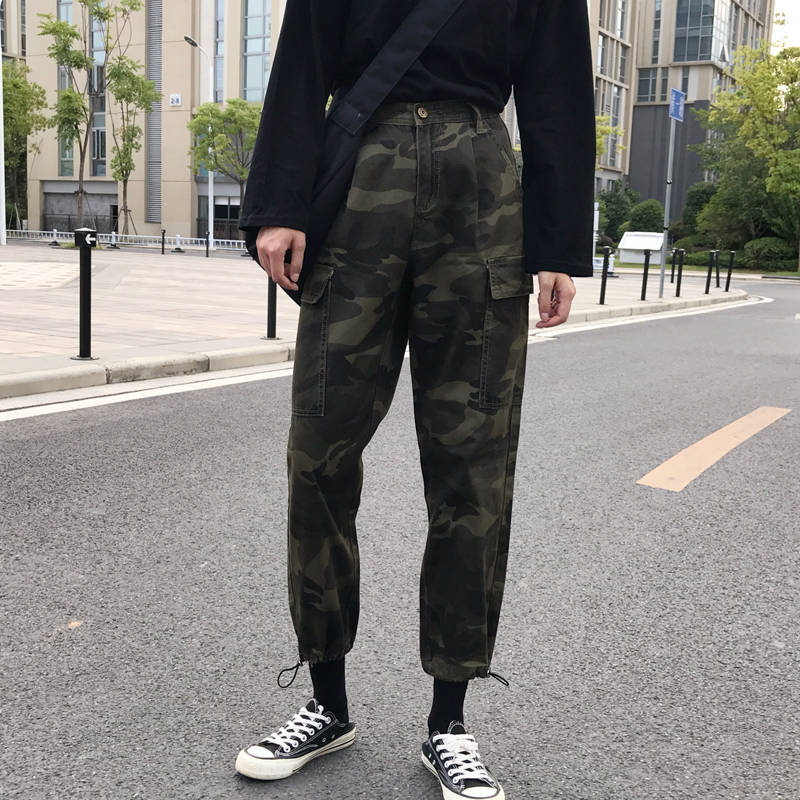 / 秋季女裝2018新款韓版BF風寬松迷彩休閑褲高腰哈倫褲工裝褲九分褲