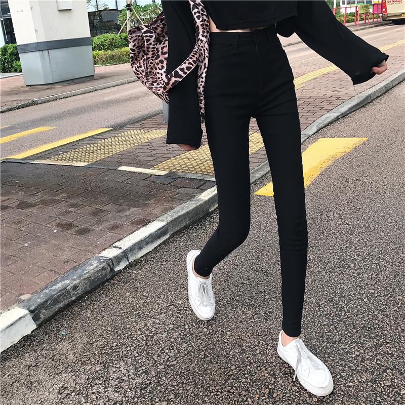 秋裝女2018新款百搭不抽絲超大彈力高腰顯瘦鉛筆小腳褲黑色休閑褲