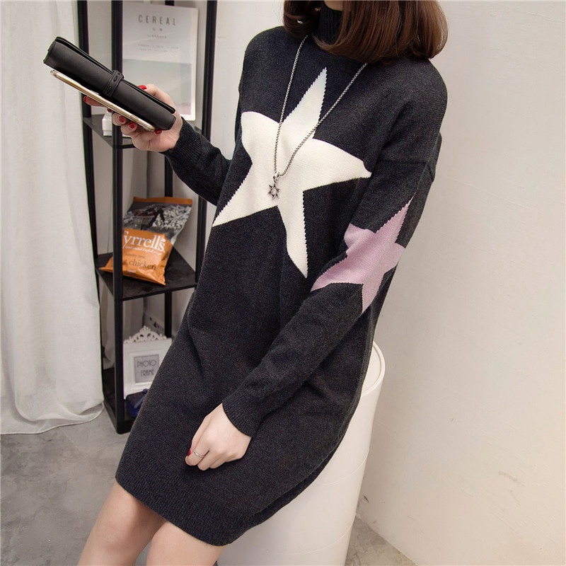 / 針織衫女套頭打底衫上衣長袖韓版外套寬松中長款毛衣女秋冬女裝