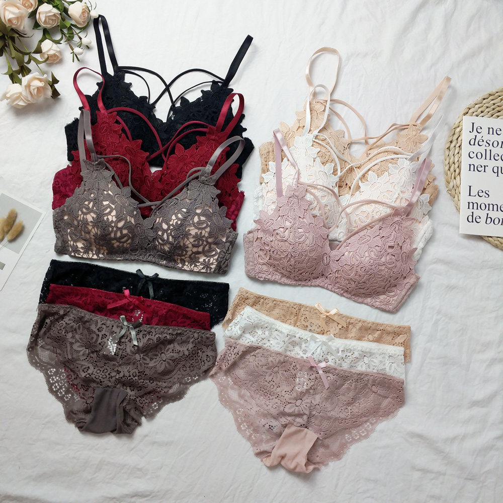 / 韓版秋季女裝性感蕾絲無鋼圈聚攏三角杯內衣學生文胸內褲時尚套裝